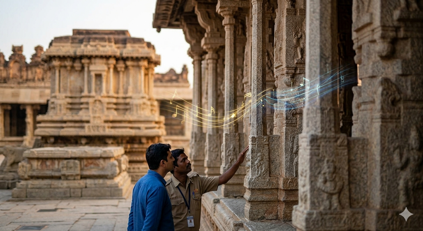 The Historical Fact: During the British era, two pillars were reportedly cut open to check if they contained metal or hollow tubes. To their surprise, the columns were found to be solid granite, leaving the colonial engineers baffled by the ancient acoustic science.